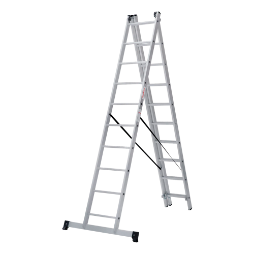 Лестница трехсекционная Новая высота серия NV100 3х14 Максимальная высота в режиме приставной лестницы: 9,45 м Максимальная высота в гибридном режиме: 6,55 м Максимальная высота в двухстороннем режиме: 3,52 м Количество ступеней: 3х14 Максимальная нагрузка: 150 кг Вес: 18,9 кг Ширина опоры-траверсы: 1 м - Варианты использования: приставная лестница, приставная выдвижная лестница, стремянка - двухсторонний режим, гибрид - стремянка с выдвинутой секцией, функция «лестничный пролёт» - Высокая прочность и надёжность при небольшом весе изделия - Легко устанавливается и обеспечивает высокий уровень комфорта - Стойки и ступени из экструдированных алюминиевых профилей - Шаг ступеней 260 мм - Рифлёная поверхность ступеней для безопасного подъёма и спуска - Многократная развальцовка в соединении ступеней со стойками обеспечивает высокую прочность и долговечность - Алюминиевые направляющие кронштейны надёжно удерживают выдвижную секцию во всех рабочих положениях - Зацепы с автоматическим фиксатором - Широкая поперечная траверса обеспечивает высокую устойчивость - Опорные наконечники стоек и траверсы из прочного пластика для устойчивого положения - Верхняя секция легко снимается и устанавливается и может использоваться как отдельная приставная лестница - Компактность при хранении и транспортировке - Практичность и внимание к каждой детали гарантируют безопасность работы на высоте