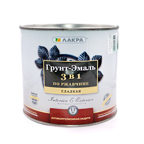 Высококачественная грунт-эмаль на алкидной основе, сочетает в себе свойства преобразователя ржавчины, антикоррозионного грунта и декоративной эмали. После высыхания образует глянцевое покрытие, устойчивое к механическим и атмосферным воздействиям. Для наружных и внутренних работ. Для защиты и окраски как чистых, так и ржавых или частично прокорродированных металлических поверхностей с толщиной плотнодержащейся ржавчины до 0,1 мм. Состав: Органические растворители, синтетические смолы, пластификатор, антикоррозионные пигменты, специальные добавки. Время высыхания при температуре +20°С и влажности воздуха 70%, ч Время полного высыхания при температуре 20°С и относительной влажности 65% составляет 10 часов, межслойная сушка в пределах 1 – 3 часов. При понижении температуры и увеличении влажности срок высыхания увеличивается. Примерный расход На однослойное покрытие распылителем — 11-12,5 кв.м/л; валиком — 10–11 кв.м/л; кистью — 8,3-10 кв.м/л.