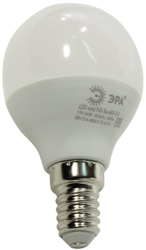 Лампа св/д ЭРА стандарт шар P45 E14 9W(720lm) 2700K 2K 88х45