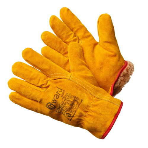 Перчатки из спилка оранжевого цвета, утеплитель мех-мутон GWARD Driver Lux Zima