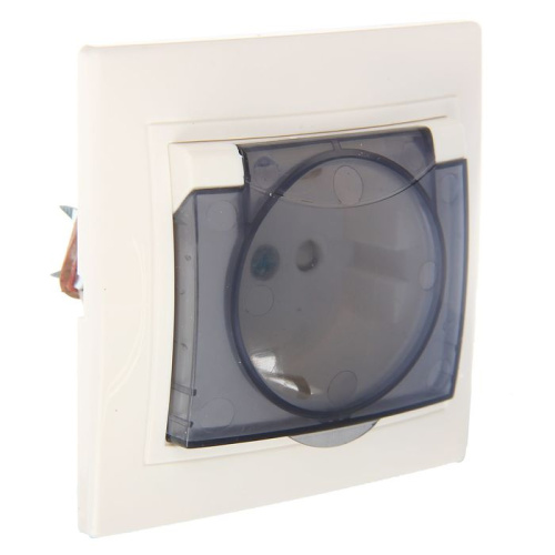 Розетка СУ 1 мест. 16А бел. (керам. осн., земля, шторки, крышка, IP44) TDM Таймыр