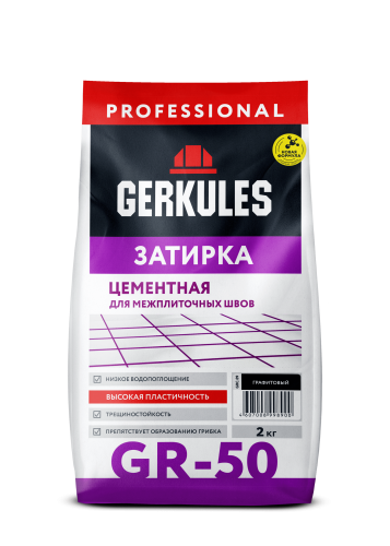 Затирка Геркулес графитовая, 2 кг Смесь содержит в своем составе цемент, природные наполнители и химические добавки, придающие расшивке малую усадку, пластичность, высокую прочность, водостойкость, высокую стойкость к истиранию. Отличается низким водопоглощением и противогрибковым эффектом.
