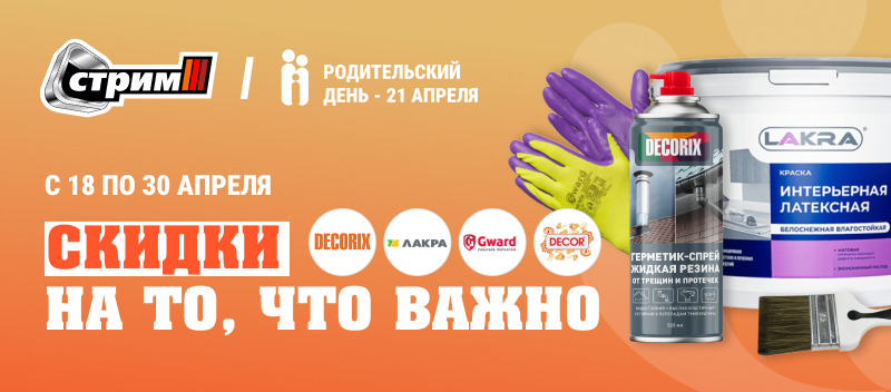 С 18 по 30 апреля включительно приобретайте товары для дома, ремонта и лакокрасочных работ с приятной экономией. Пора освежить интерьер и привести в порядок то, что давно откладывали!