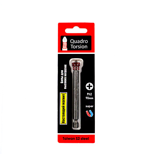 Бита 1/4" Ph2х90мм с магнитной насадкой (1 шт./карта) "Quadro Torsion"