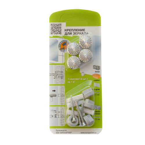 Комплект крепления для зеркала хром рифленое ЕВРОПАРТНЕР