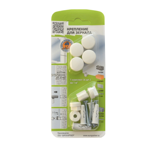 Комплект крепления для зеркала белое гладкое ЕВРОПАРТНЕР