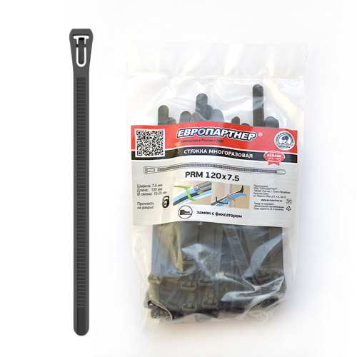 Стяжка многоразовая PRM 200х7.5 (50 шт.),черная
