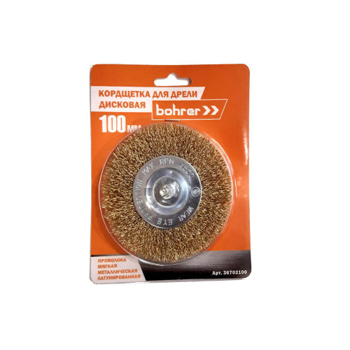 Корщетка дисковая Колесо витая мягкая для дрели 100мм латунированная толщ. проволоки 0,3мм Bohrer
