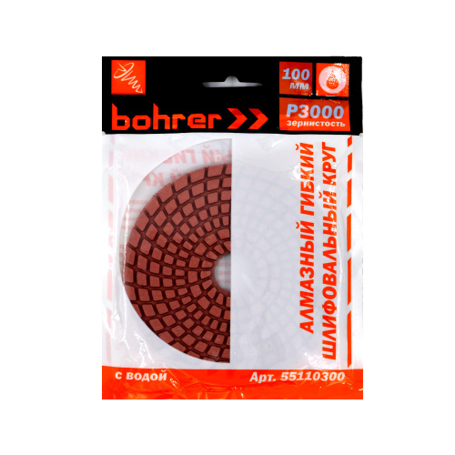 Круг алмазный гибкий шлифовальный 100мм, Р3000, "черепашка" с водой Bohrer