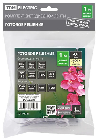 Комплект св/д ленты SMD2835-60Led/m-12V-4.8W/m-IP65-3000К 1м 6W TDM
