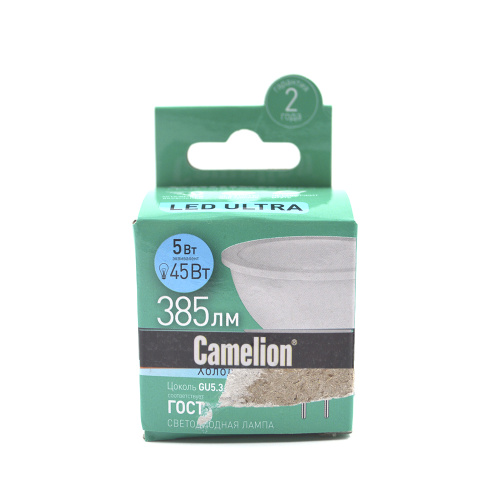 Лампа св/д Camelion MR16 GU5.3 12V 5W(385lm 100*) 4500K матов. 49х50 пластик