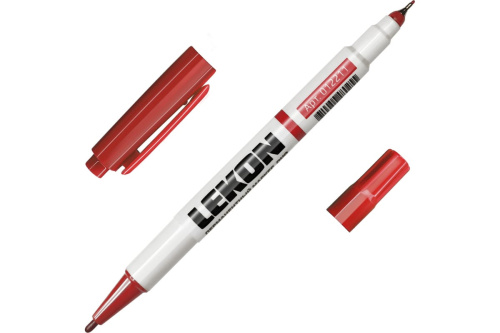Маркер перманентный двухсторонний Красный 0,5мм/1мм DUO LEKON
