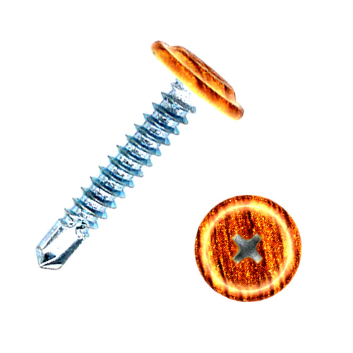 Саморезы с пресс-шайбой премиум-качества имеют глубокий шлиц - phillips № 2, что позволяет закручивать изделие быстро и без срывов. Закаленная высокоуглеродистая сталь саморезов ПШС (сверло) позволяет просверливать лист металла толщиной до 5 мм. Порошковая окраска в цвета RAL/RR осуществляется на автоматическом оборудовании европейского производства. Фирменная маркировка (знак "М") надежно защищает от подделок.