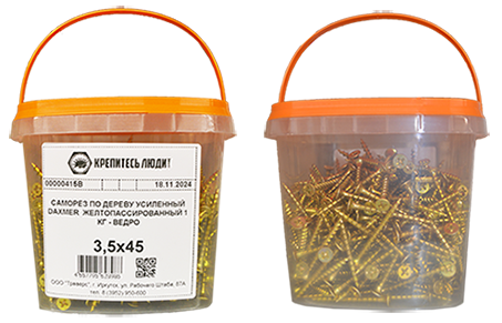 Саморез по дереву усиленный Daxmer 3,5х45 желтопассированный 1 кг - ведро
