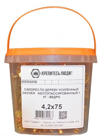 Саморез по дереву усиленный Daxmer 4,2х75 желтопассированный 1 кг - ведро