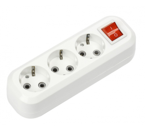 Колодка 3 гн. 16А 250В (корпус АБС-пластик, белая, земля, выкл.) Smartbuy