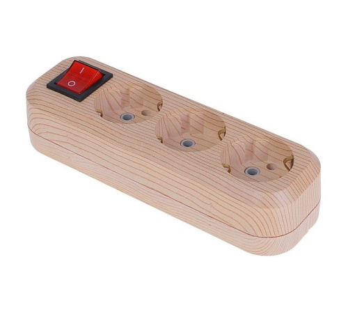 Колодка 3 гн. 16А 250В Эко (АБС-пластик, сосна, земля, выкл.) TDM