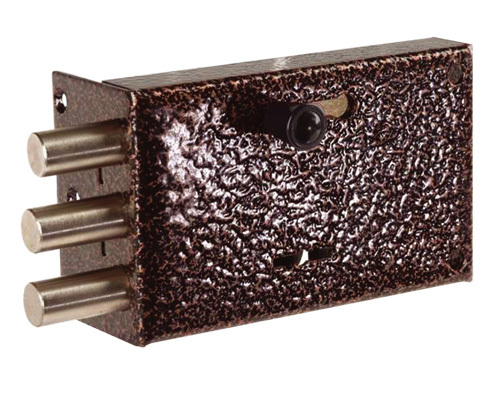 Замок открывается и закрывается с наружной и внутренней сторон 1,5 оборотами (на 3 фиксируемых положения) комплектного ключа. Засов изготовлен из 2-х вращающихся стержней круглого сечения. Данная модель может закрываться на задвижку.